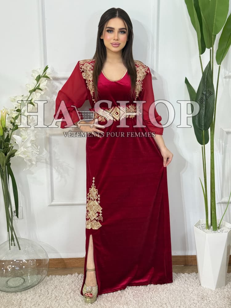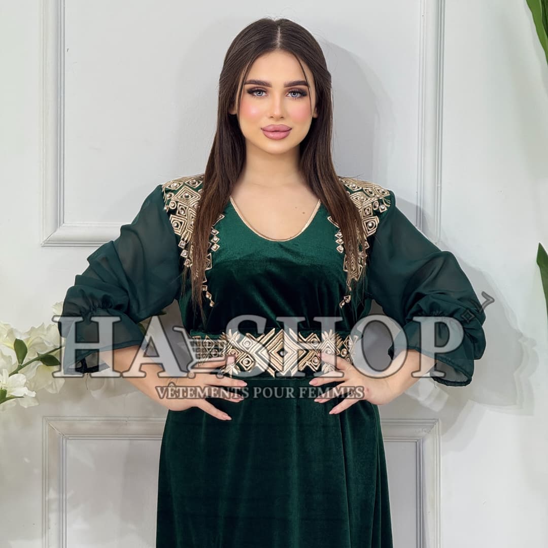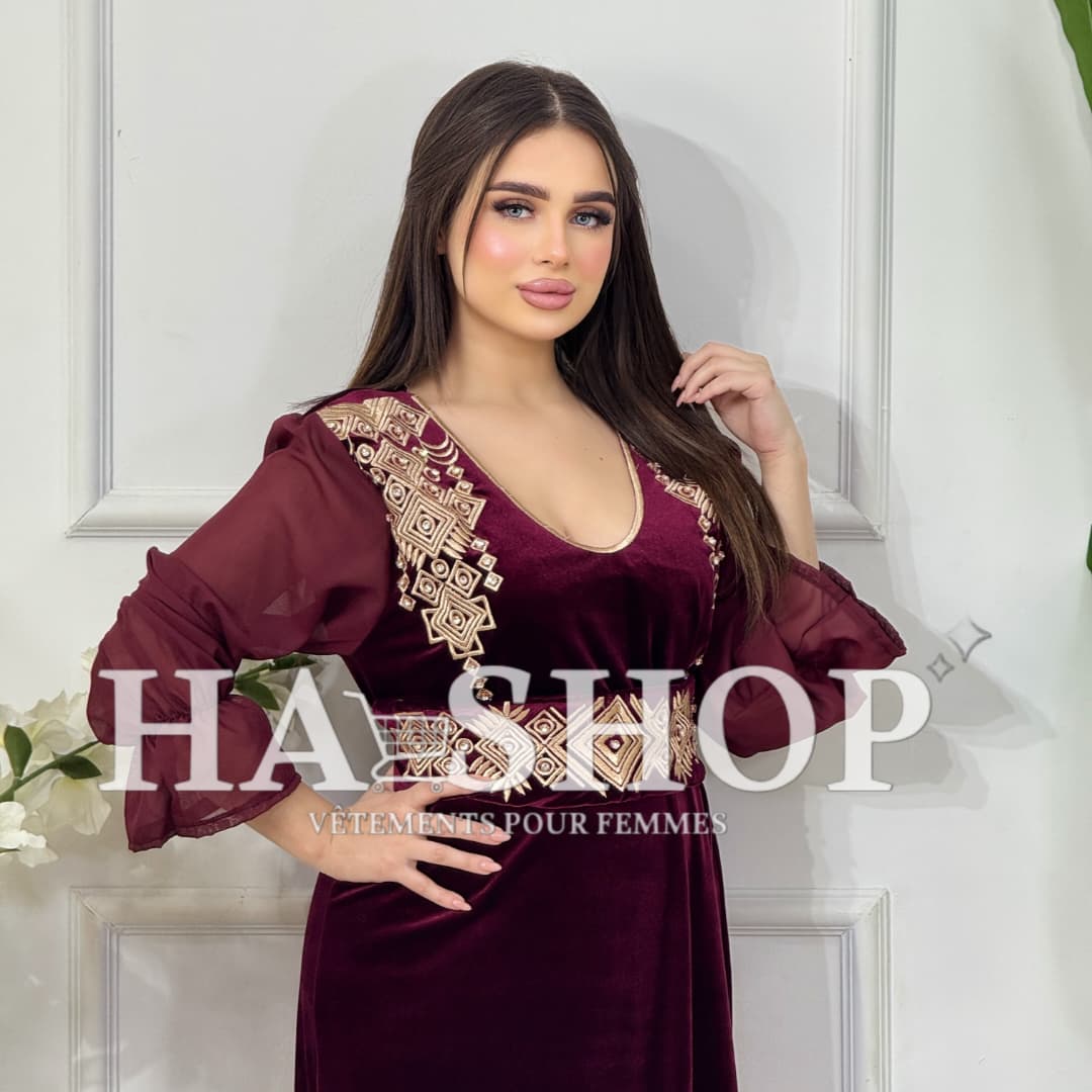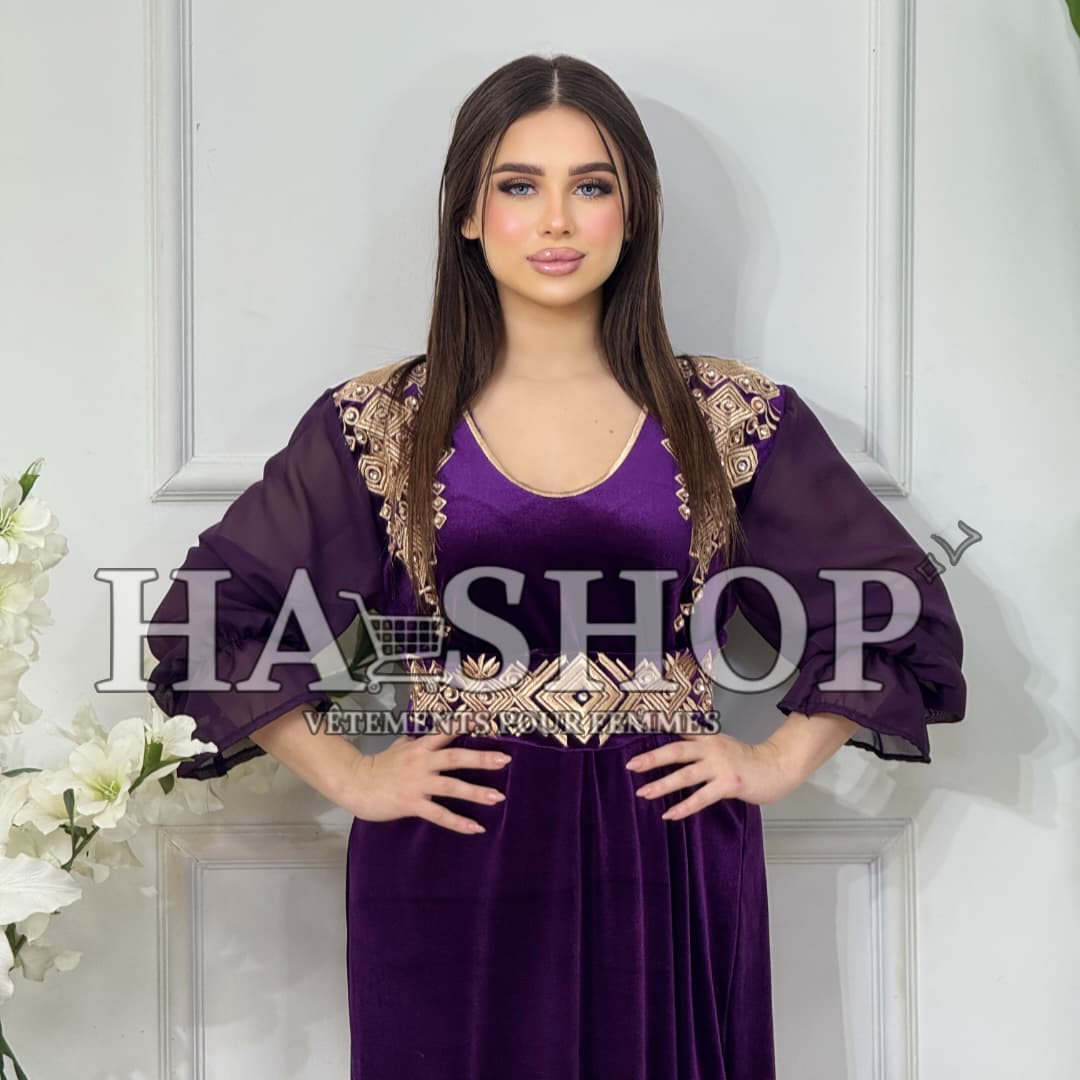 ★★★★★تألقي مع فستان Elégance Royale ، قطعة فاخرة مصممة لتمنحك حضورا راقيا في كل مناسبة. يأتي الفستان بقماش مخملي ناعم ينساب على الجسم بكل أناقة، مع أكمام شفافة تمنحه لمسة أنثوية ساحرة.